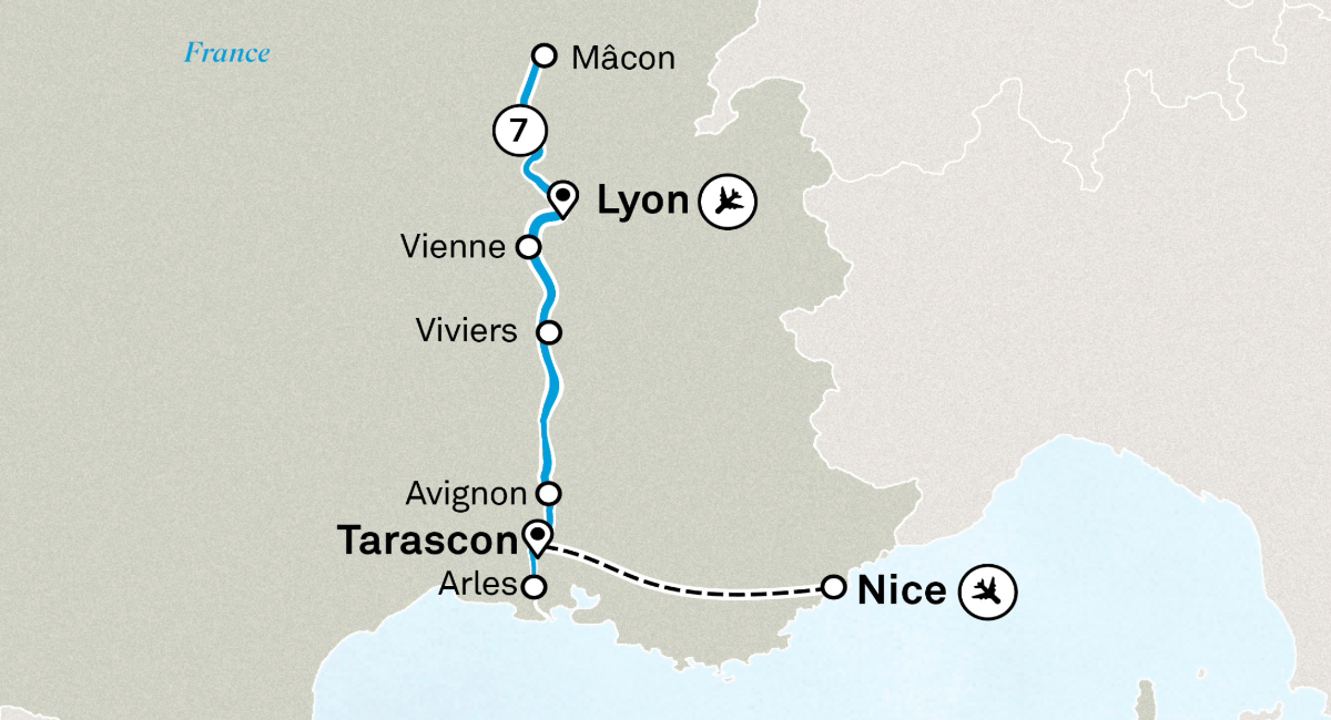 Este viaje de ocho días comienza en Lyon, conocida como la capital gastronómica de Francia, y termina en la animada ciudad de Tarascón. Únase a nuestro director general, Ken Muskat, y navegue por los ríos Ródano y Saona en su lujosa Scenic Space-Ship.