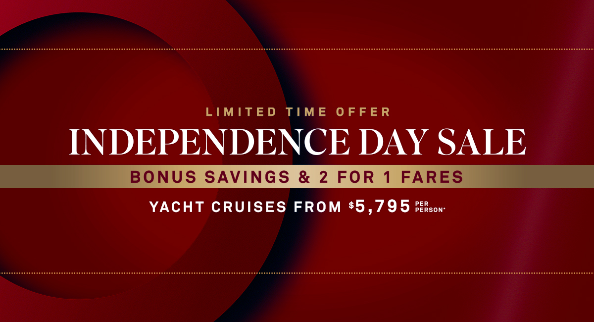 Independence Day Sale: Bonus savings of up to $2,000 per suite ($1,000pp) are available on select departures. Savings vary by departure. Combinable with 2 for 1 Fares and FlexCredit offers; not combinable with Scenic Select. Deposit required at time of booking.
