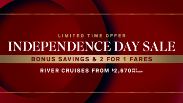 Independence Day Sale: Bonus savings of up to $1,750 per suite ($875pp) are available on select departures. Savings vary by departure. Combinable with 2 for 1 Fares and FlexCredit offers; not combinable with Scenic Select. Deposit required at time of booking.