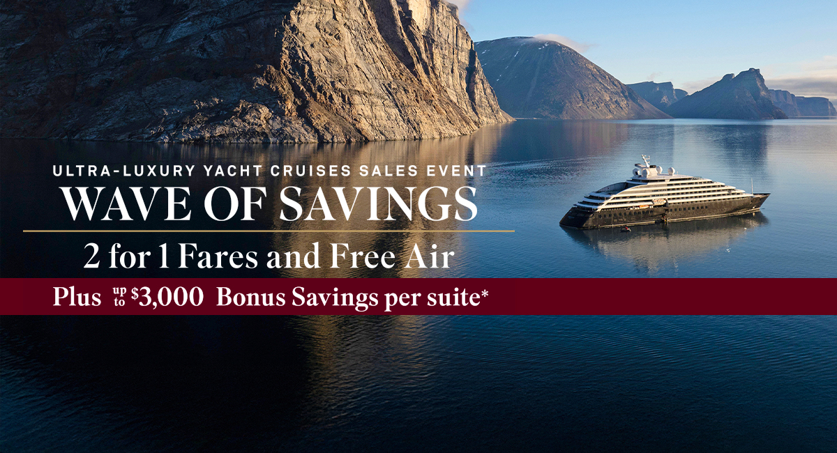 Scenic’s Wave of Savings Sale offers you Bonus Savings of up to $3,000 per suite plus 2 for 1 Fares and Free Air on select ultra-luxury 2025-2027 Yacht voyages.